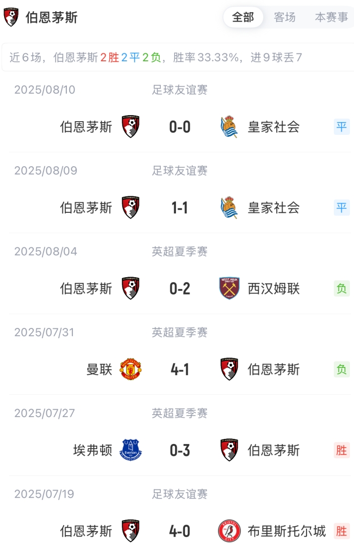伯恩茅斯首发:28-佩特洛维奇、15-亚当-史密斯、18-迪亚基特、5-塞内西、3-特鲁弗特、8-斯科特、12-亚当斯、16-塔弗尼埃、7-布鲁克斯、24-塞梅诺、9-埃瓦尼尔森